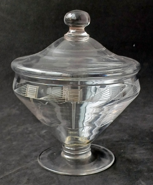 Compoteira de cristal. Apresenta colagem na parte inferior. Medidas: 19 (A) x 15 cm de diâmetro.