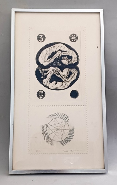 CÉLIA SHALDERS. Gravura (Prova do Autor). Medidas: 68 x 39 cm (moldura) e 52 x 24 cm (gravura)