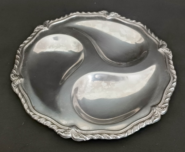 EBERLE - Petisqueira redonda, com três compartimentos, própria para frios, e borda trabalhada, em inox 18/8, da marca EBERLE. Na caixa original. Mede ...